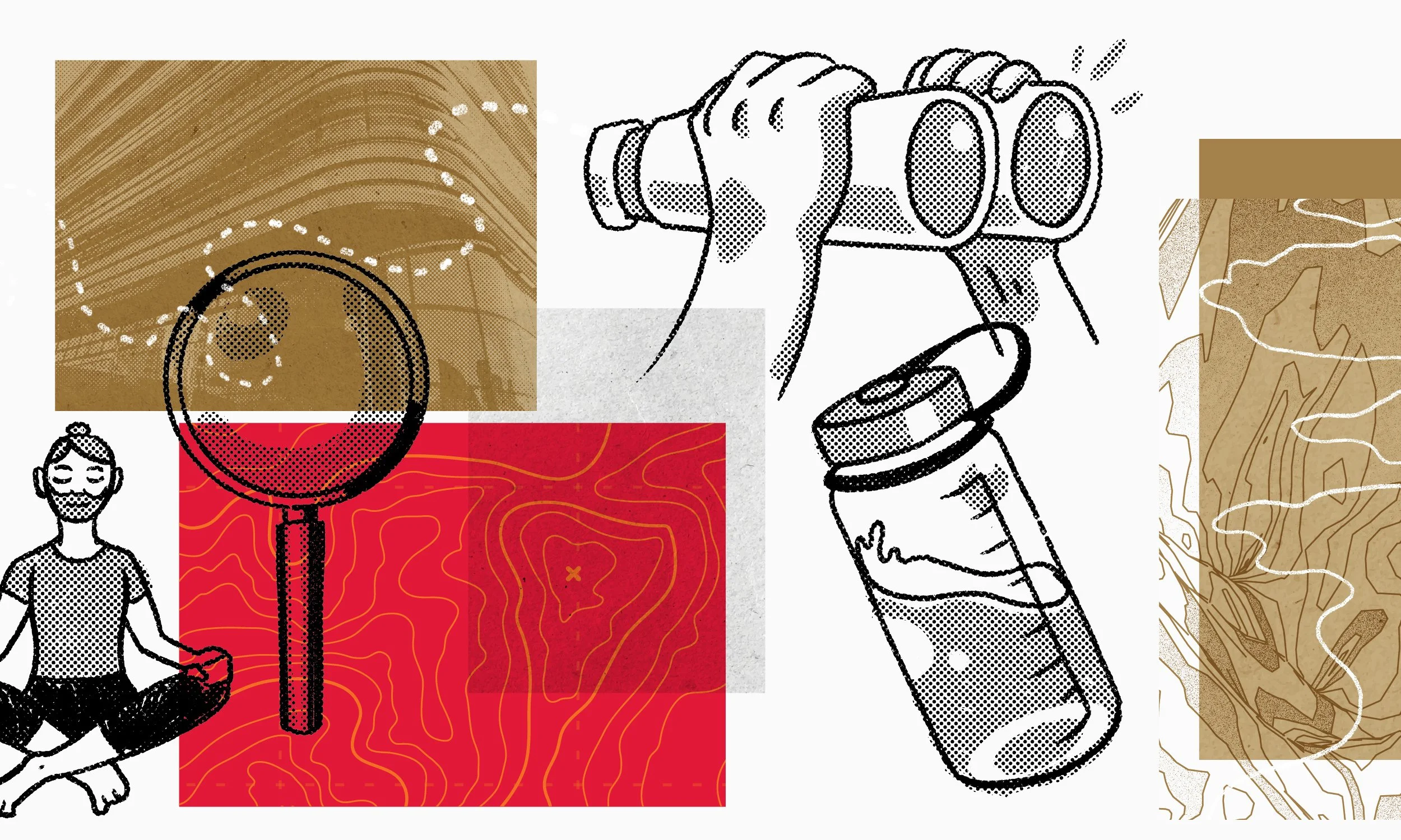 I developed a system of imagery and illustrations that harkened to classic outdoor adventure imagery; browncraft paper textures, maps and elevation charts, and half-tone icons and photography.